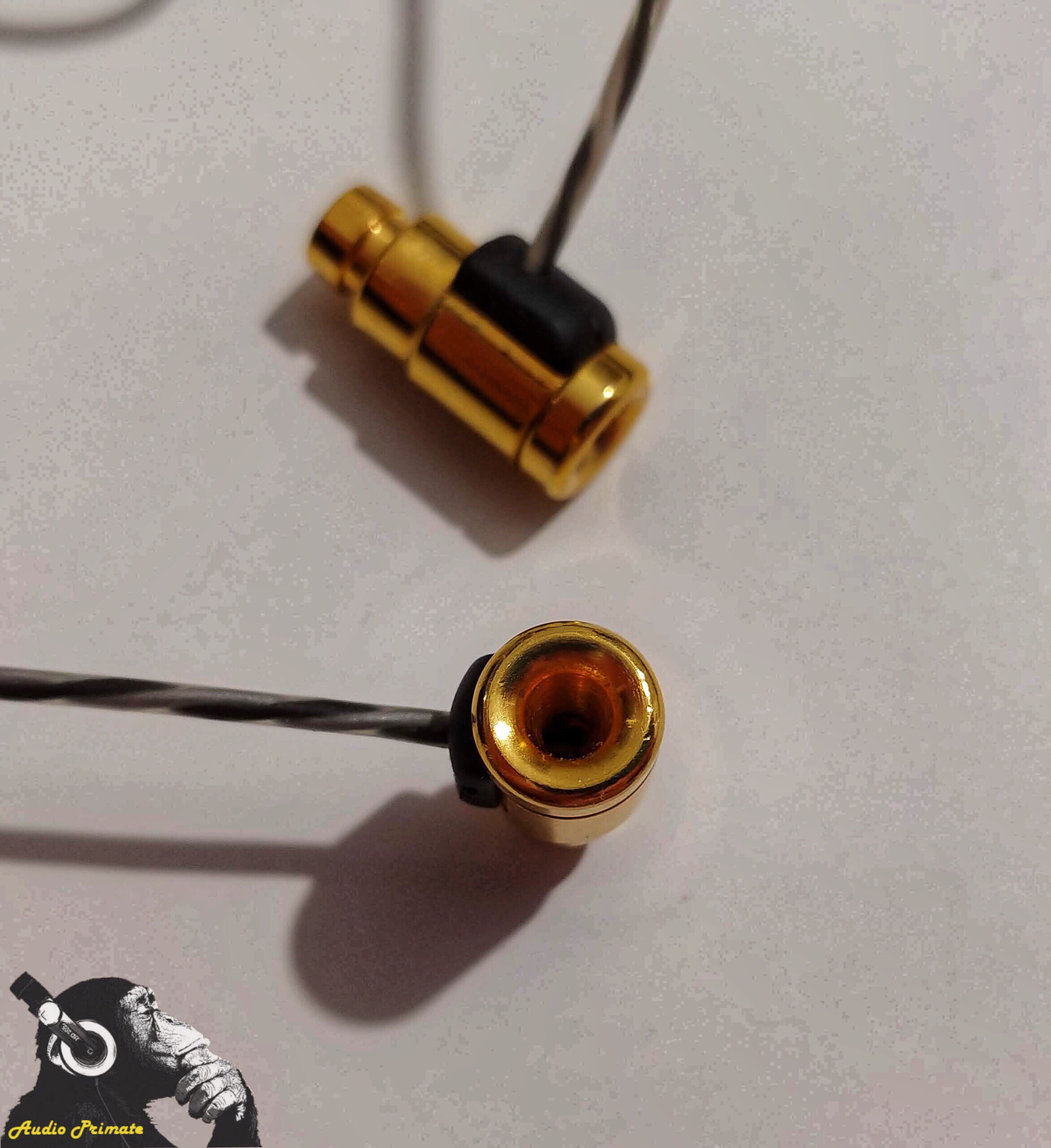 The Gold have a refinement of the Pros open-at-both-ends design, using a slightly thicker barrel with a more open rear port and a ribbed rather than bevelled finish. Looking in to either barrel, you can see the wiring at the back of the driver or the front wall of the driver casing respectively, without any mesh or gauze in the way. It’s pretty cool, but also a reminder to treat these IEMs with a little care, is it will be easier than most to get junk inside the casings.