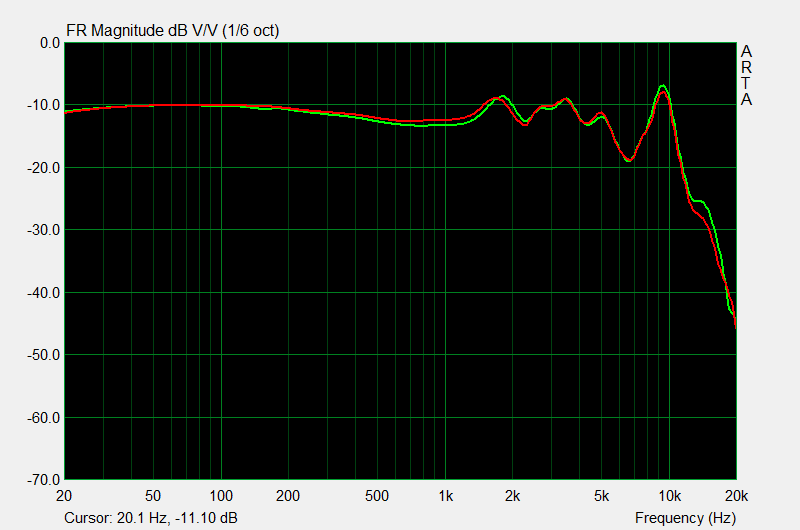 On the Ara, I think there is a dip in the upper mids/lower treble that affects Macy’s vocal on Macy Gray – Slowly (24-192, binaural). She sounds relaxed with a little lack of bite. It actually made me go look for measurements to show what I’m hearing (below). Both Purr1n’s measurement (black background) and Crinacle’s (white background) give some insight. There is a dip at about 2.5kHz on the Ara that likely is responsible for the more laid-back feel of Macy’s vocal. The 6kHz dip, explains differences in the trumpet presentation. The U9 has more air to the signature and Macy sounds a bit more emphatic, as does the bass. The U9 feels airy, but manages to do it without sounding like it has expected depth in the stage. The soundstage is more narrow than the Ara. There is some echo to Macy’s voice which makes me think the noise floor is lower on the U9. The sound on the U9 is vibrant compared to the more easy-going Ara. On the trumpet, the U9 can come across as a bit strident. The Ara does a better job of conveying the trumpet with a pleasing fluidity. Bass on the Ara is also more fluid.