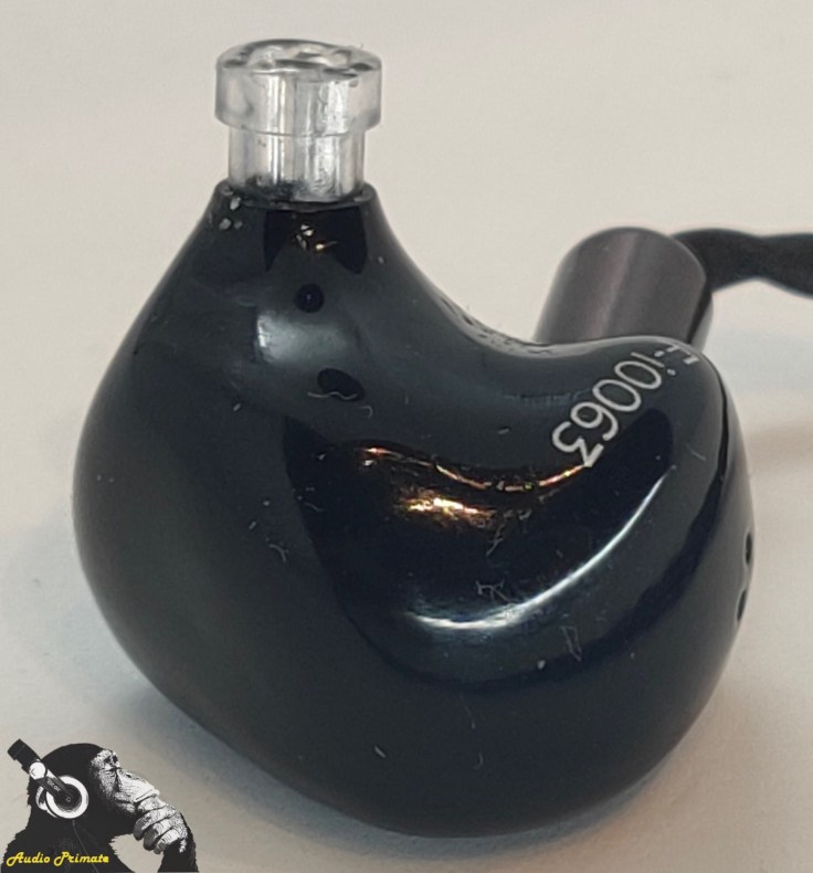 The Fusion are built from acrylic in a pseudo-custom design, with some gentle contouring on the inner face of the IEM to conform to the shape of the average user’s ears. There is no getting around it – these shells are DEEP, with a relatively short nozzle but a thick body which sticks out a few mm from the outer bowl of the ear when worn. The bore itself has three sound tubes, and this is matched by a triple-holed vent on the top of the IEM shell, matching the pattern in the nozzle almost exactly. As mentioned, the pseudo-custom design means that the Fusion is never anything less than a comfortable fit for me, but it doesn’t “lock in” to the upper part of the ear like a true custom or some of the more aggressive universal designs like the Ibasso IT03. I relay on foam tips to fix the Fusion firmly in ear, as due to the size they can otherwise move a little in everyday use with some of my usual silicon tips. It should be mentioned I have particularly large ear canals, so someone with a more average lughole size will probably find this less of an issue.