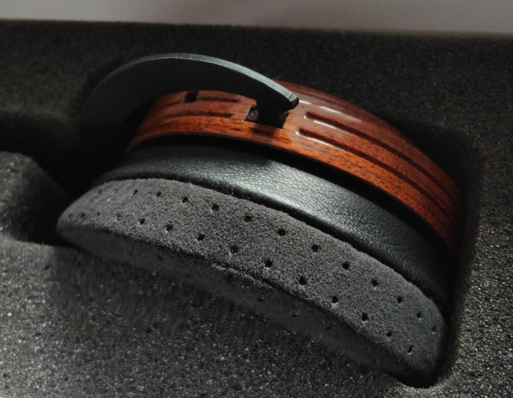 As illustrated in the technology section above, the earcups are made from multiple layers of mahogany wood, coated on the internal sides with Dynamat damping to create a rigid, highly damped frame for the Nhoord driver being used that weighs a fraction of the higher end Spirit Torino “inertial frames”. The cups are nicely varnished and look like a single piece rather than a collection of individual wood slices, so the construction and fitting is excellent as far as I can tell.