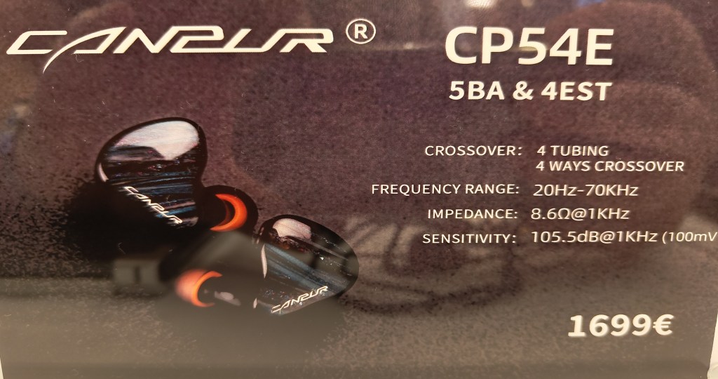 Another brand I’ve not come across before, Canzur arrived fully loaded at the show with no less than 8 models on display, ranging from single DD and single BA models at just over 100 euros all the way up to a 3399 flagship packing 6 BAs, 2 next-gen bone conduction motors and 2 EST drivers. As the flagship was a. Out of my price range and b. Being enjoyed by Head-Fi main man Jude Mansilla while I was sat at their booth, I settled for trying the CP54E first, consisting of 5 armatures and 4 EST drivers.