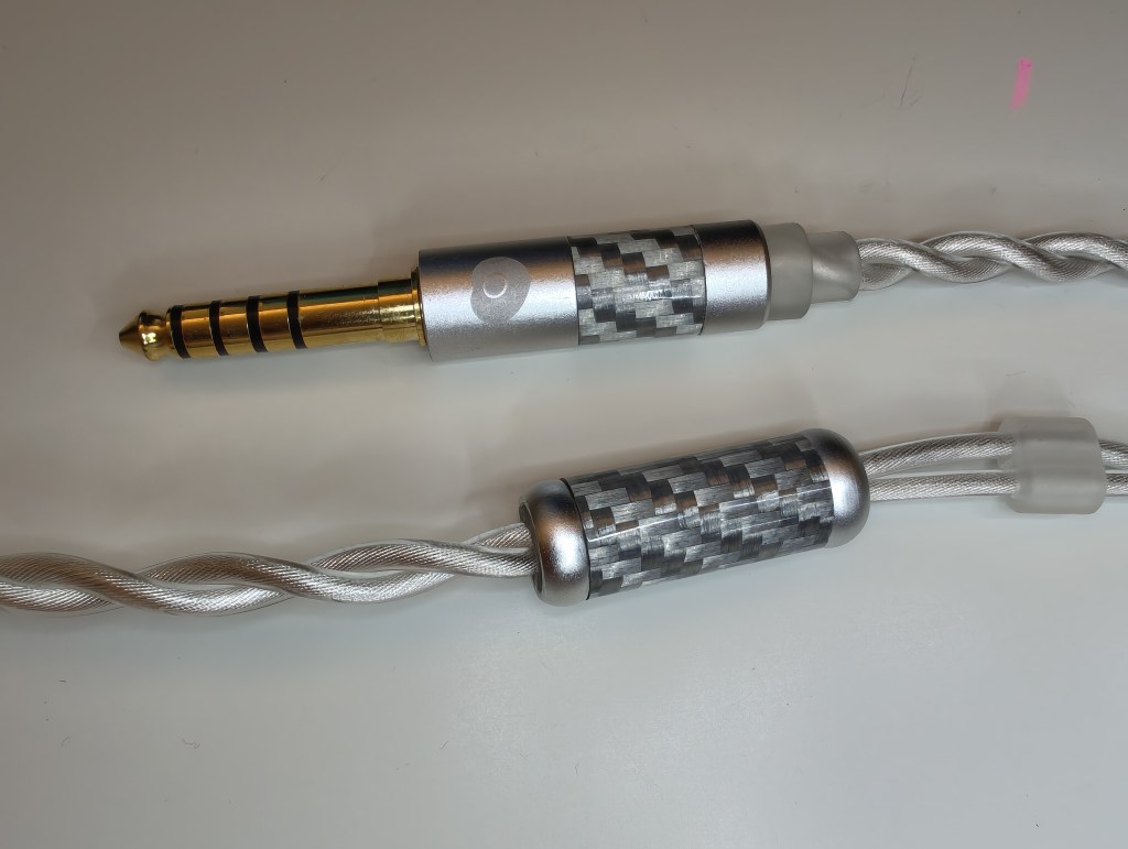 The cable included with the model I purchased was their 2-wire premium cable (terminated in 4.4mm). It’s a nice silver design, with silver-grey carbon fibre inserts on both the y-split and 4.4mm connector. The cable feels quite thick but is very flexible, sitting nicely behind the ears in use. Their standard cable is made by Singaporean cable manufacturer NullAaudio – the “premium” cable actually has Soundz Custom branding on the connector, but it wouldn’t surprise me if this was also a Null Audio collaboration. Either way, it’s a nicely finished and very ergonomic cable that definitely feels the part for a 1000 Euro in-ear.