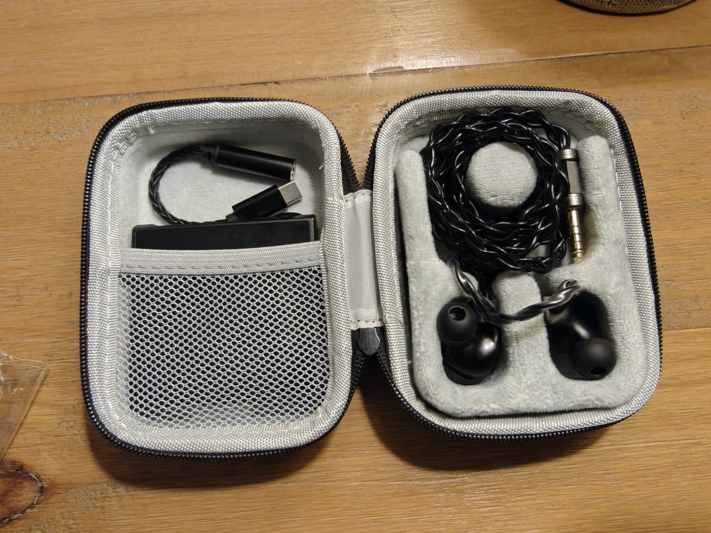 Overall, a very nicely presented and high value loadout, with the branded Velvet tips and decent quality cable, usable case and usb-C dac adapter giving you pretty much everything you need to get going in one well-put together package. As an added bonus, while the case is designed more for your backpack than your pocket, it is big enough to hold my current “walk around” DAP (the Shanling M1S), meaning I can pack everything for a random audio trip into the one case in my backpack or carry on luggage.