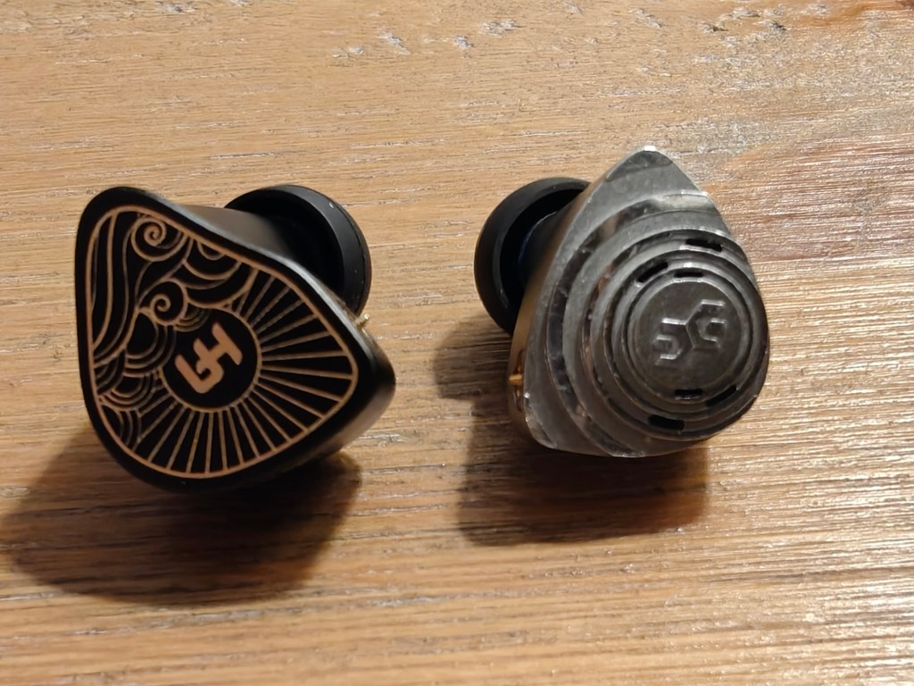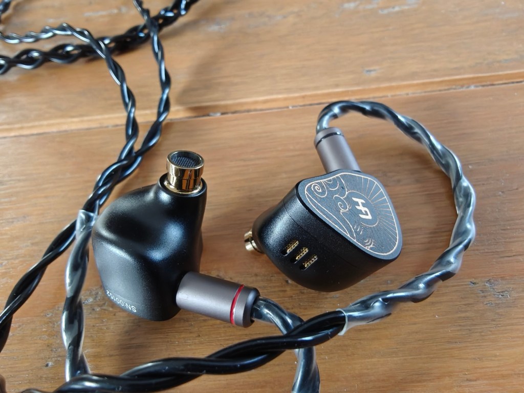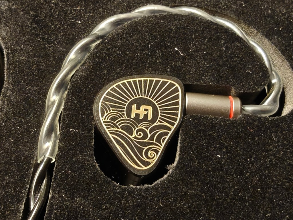 The overall design of the IEM is attractive but not mind blowing, with a flat metal faceplate with some nice HA electroplated artwork and logo on each shell. There is an interesting vent system visible on the underside of each IEM shell which is finished in a gold mesh, alongside gold nozzles, adding a little bit of interest to an otherwise smooth and standard shell design.